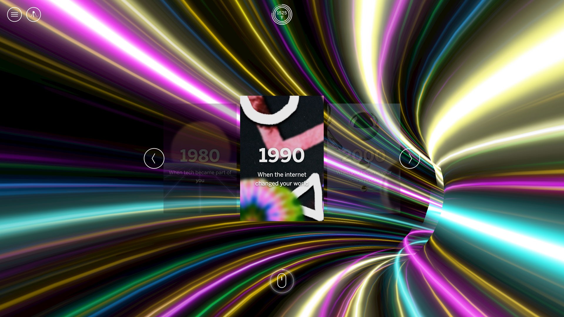 We build an excessive webGL page, in which you travel through time and space, visit past decades and their memorable quirks, while learning the important milestones our client achieved at the given time.